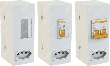 Com certeza a melhor opção em segurança para suas instalações elétricas! A Caixa com tomada para Ar-condicionado traz um design compacto que se integra em qualquer ambiente, comercial, industrial ou residencial. Aceita disjuntores padrão din de 1P ou 2P para correntes de até 70A (testados em disjuntores Brasiltec e Gonbre)